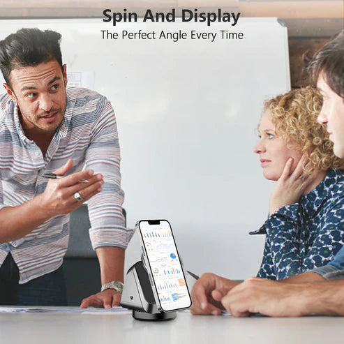 بفضل القاعدة القابلة للدوران 360 درجة ، يمكنك بسهولة ضبط زاوية العرض لمكالمات الفيديو أو الاستخدام على المنضدة الليلية أو الشحن في المكتب.